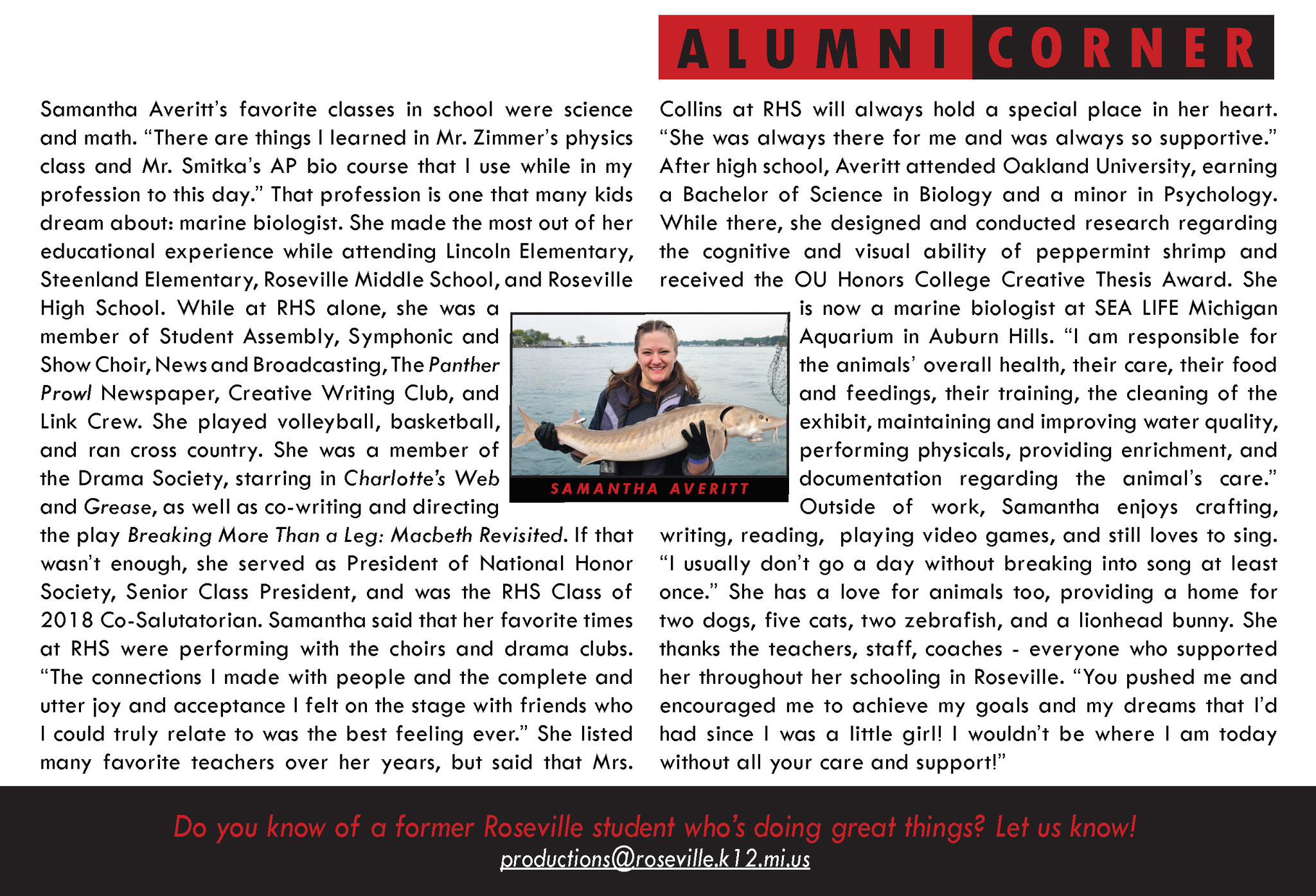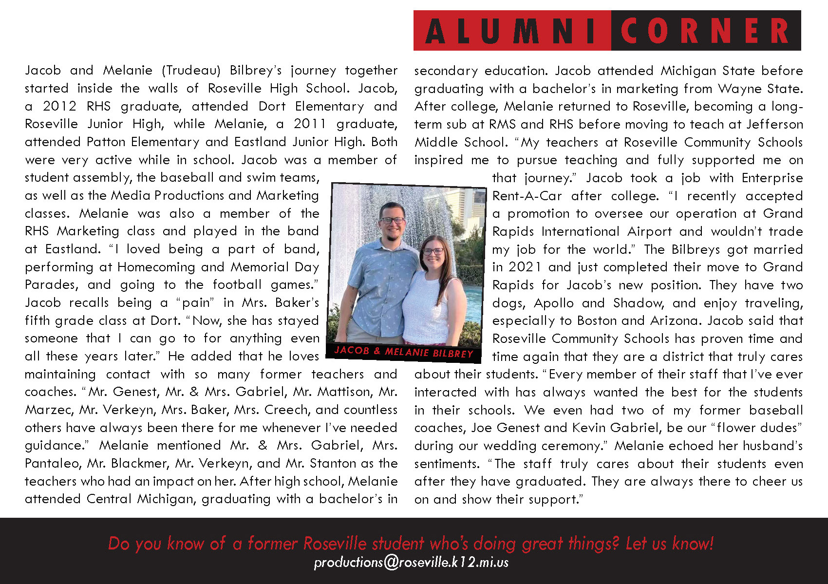 We are proud of the countless number of alumni who have excelled in a variety of ways since graduating from Roseville Community Schools!